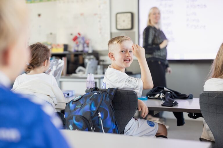 Vi har en lav klassekvotient – max. 22 børn i hver klasse – og vi har både dansk- og matematikundervisning i børnehaveklassen. Her kommer de lærere, der fra 1. klasse skal have klassen til dansk og matematik 1-3 gange om ugen for at starte indlæringen. Men i ugens løb arbejder børnehaveklasselederne også med den faglige undervisning, så børnene bliver klar til 1. klasse.