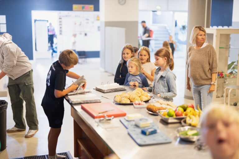 Vi tilbyder en tryg og overskuelig skoledag for børnene, der allerede fra starten bliver en del af fællesskabet på skolen. Indskolingen (0. – 2. klasse) holder til i lokaler tæt på lærerværelset, hvor man altid kan finde voksne, der kan hjælpe én